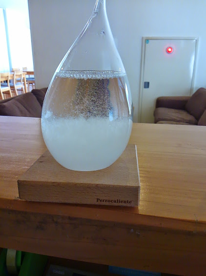 という雑貨です。この中の結晶の具合でお天気がわかっちゃう優れもの!夏は透明になったり、冬は真っ白になったりと面白いんです。
