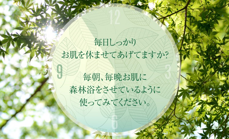 毎朝、毎晩お肌に森林浴をさせるように