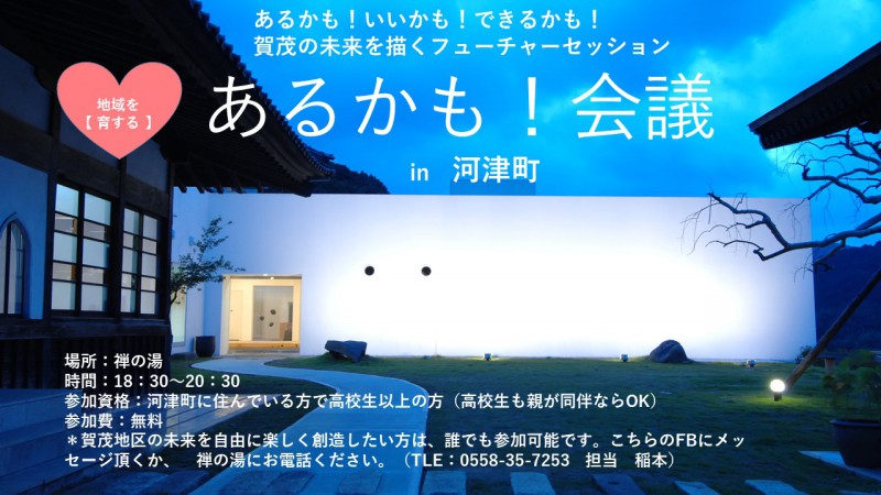 【あるかも!会議(賀茂の未来を創造する未来会議) in 河津町】 1月20日~18:30禅の湯にて行います