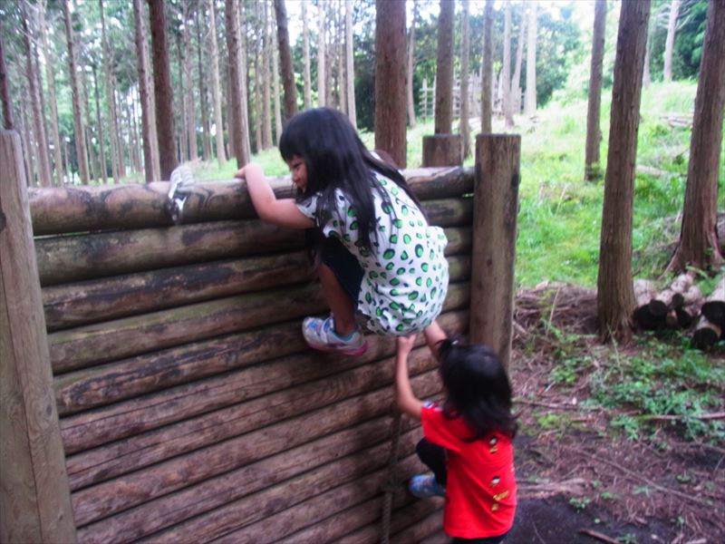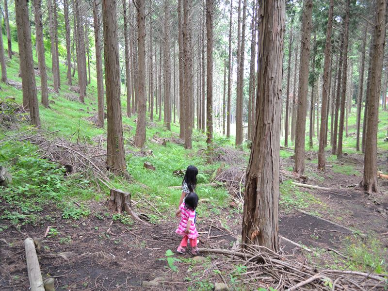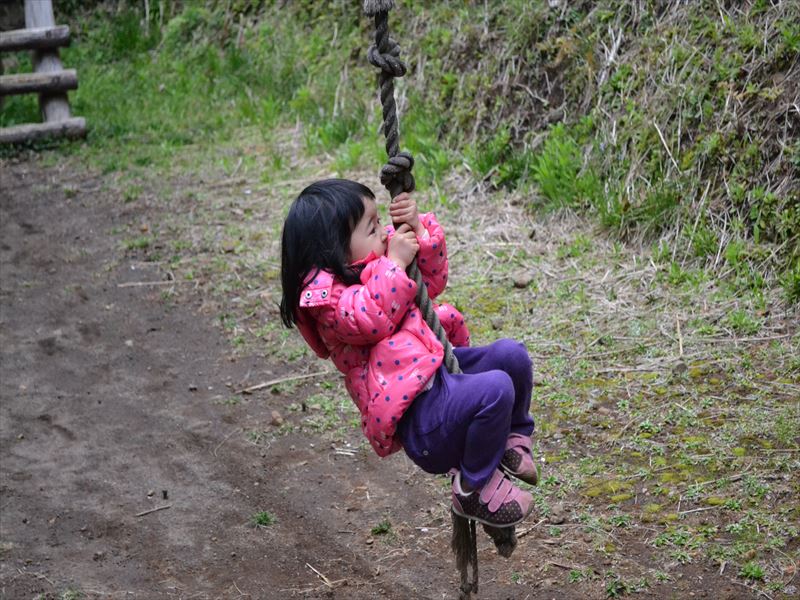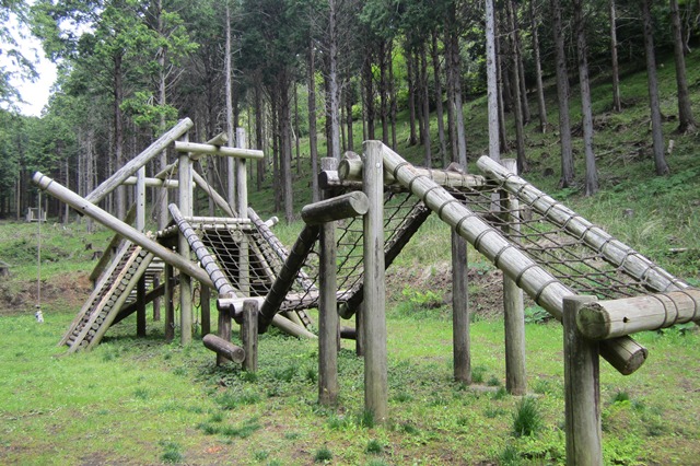 こんな森の中に アスレチックがたくさんあって、幼児から小学生まで楽しく遊べます(*´▽`*)