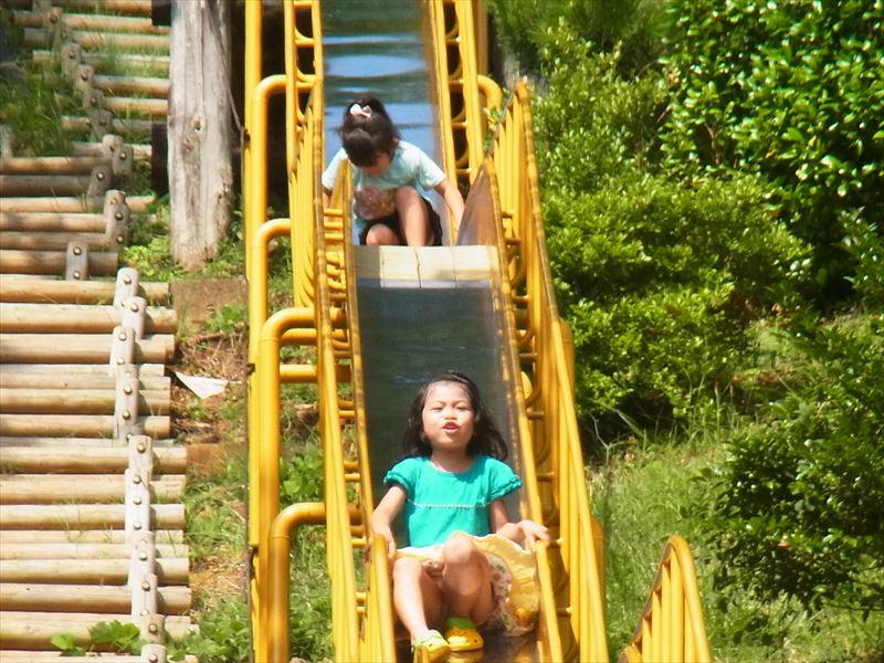 コースの最終地点はちょっと上ったところにある 長ーい滑り台がある公園です