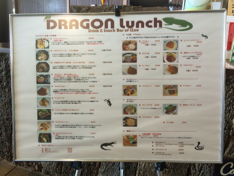 ちなみに、DRAGON Lunchのコンセプトは「ここでしか食べられないもの」だそうです。なんと!ワニプレートランチ、シャムワニの串焼き、ワニ汁、クロコダイルラーメンなど・・・確かにここでしか食べられない・・・。ワニを見たあとには、わたしは食べられませんでした・・・(・_・;)