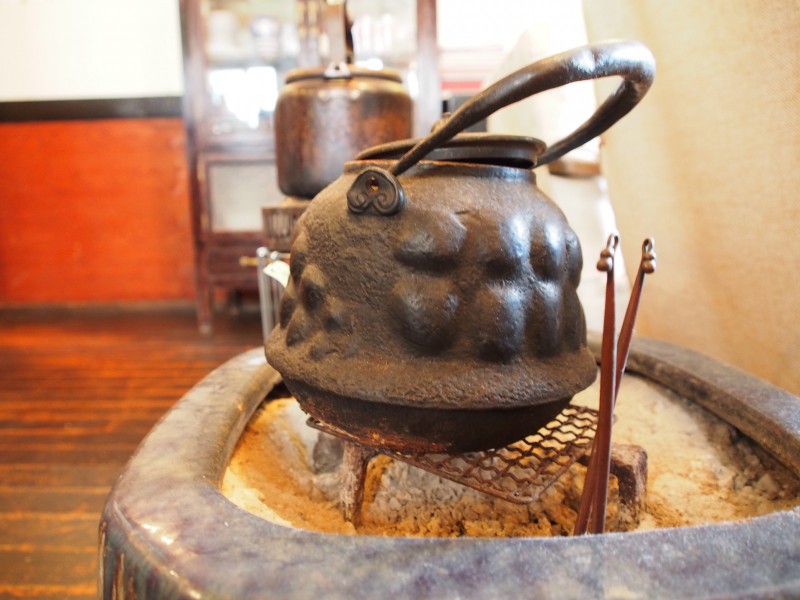 ランチを待っている間に、Cafeの雑貨たちに目を向けます。最初に目にとまったのは火鉢。