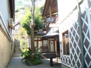 お洒落な店が並ぶ石畳の道が続きます。ペリー艦隊が下田に上陸し、了仙寺まで歩いた約700mの通り。今では、平滑川に沿って柳の並木が続き、石造りの蔵や、なまこ壁の古民家を利用したカフェや雑貨屋さんが並びます。私のいきつけのパスタ屋さんもありますよ。ここは、本当に素敵な場所なので、近いうちにブログでしっかり紹介させて頂きます。