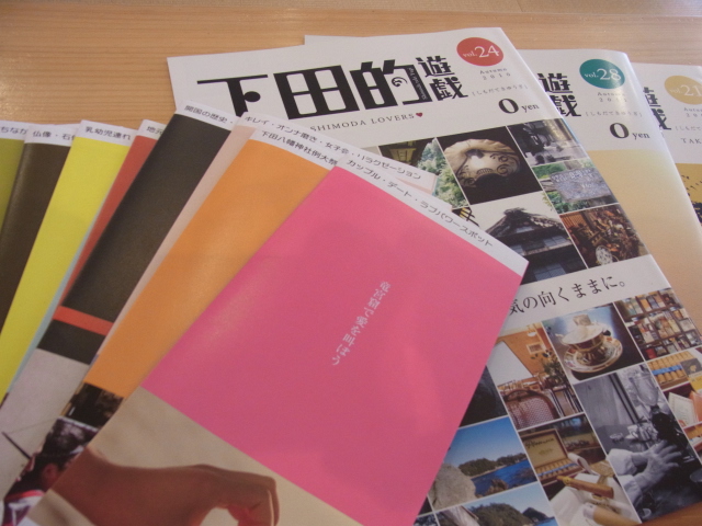 『下田的遊戯』は、フリーペーパーなんですがおしゃれで地元の方にも愛されています。新しいお店が出来たときや、最新の下田スポットを調べたい時など、他のどの雑誌よりもリアルタイムでわかりやすいですよ。中に入っている下田の街の地図が、下田散策にはかかせません。