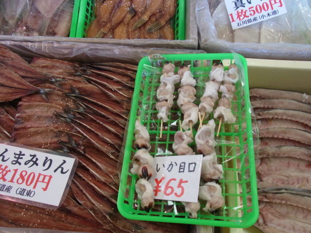 ≪いか目口≫です!!いかの目と口が串にささって干物になっているんです。お酒を飲む方には、最高のつまみですよ。こりこりした歯ごたえがたまらない通な一品です