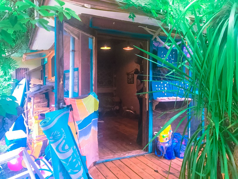 たぶん ここが玄関(笑 お庭とデッキとお店が一体な 不思議な場所
