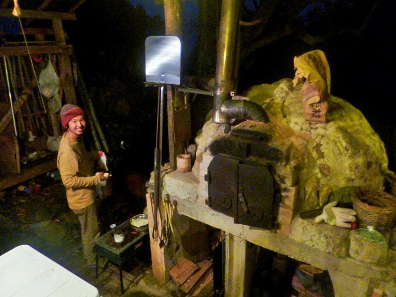 外では、まっつんが猪が来ないようにと一晩中火を絶やさず