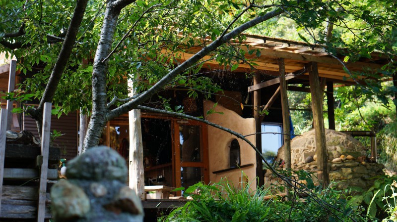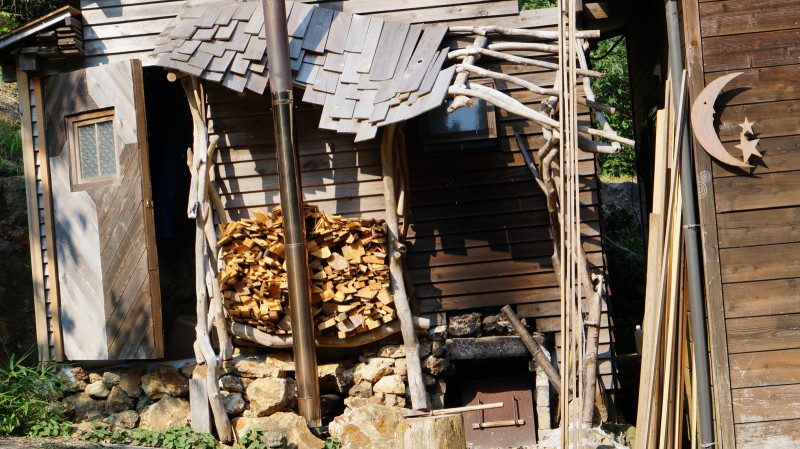 この建物なんだと思いますここはお風呂です。しかも五右衛門風呂。しかも露天!!屋根も芸術的ですよね♪さすが 芸大出身。自分を家や料理で表現するまっつんはやっぱりアーティストですね。