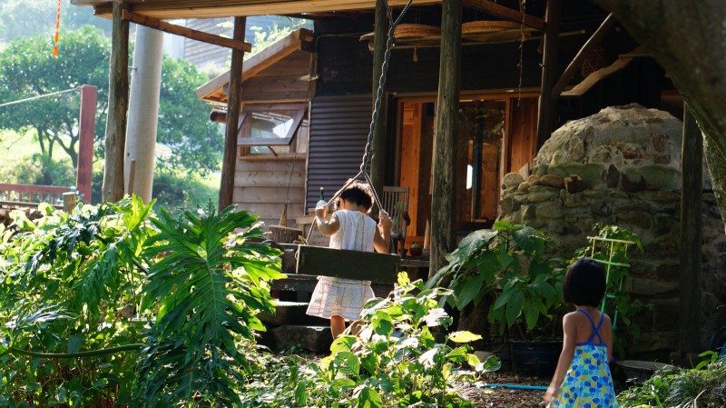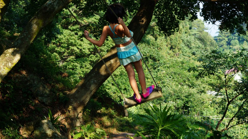 ☆畑へと続く空中ブランコ☆もちろん畑へと続く道も手作りです。