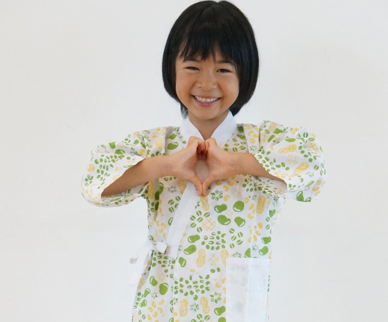 バングラディシュで木型で丁寧にプリントしてくれる業者さんを見つけ、それを作務衣に加工してくれる裁縫屋さんをみつけ、出来上がったのが、この豆模様の禅の湯オリジナル作務衣。