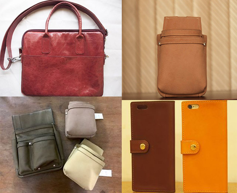 こんな感じで様々な皮の商品をバングラディッシュで作っています。